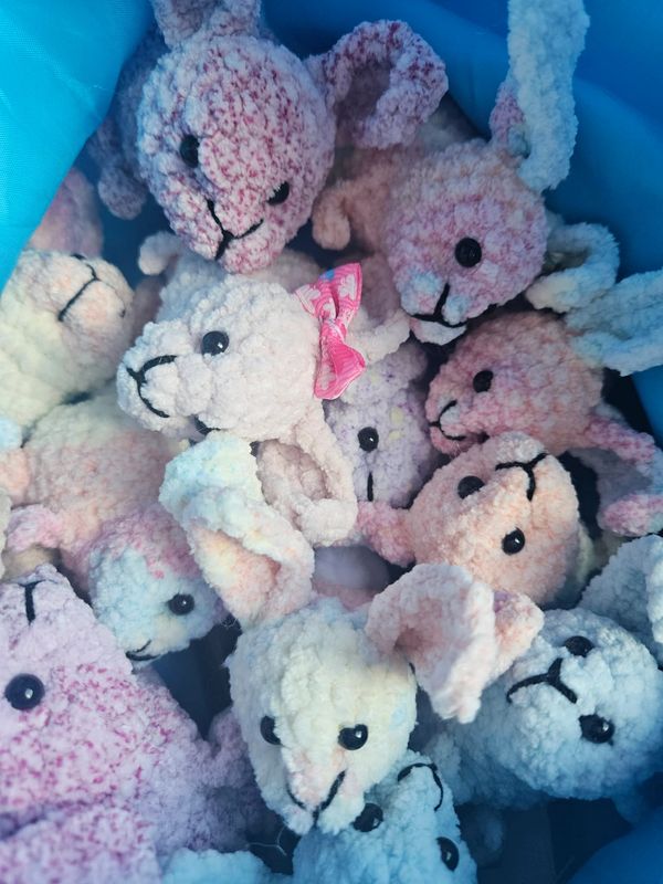 Everly’s bunnies are hand crochet by her mama and sent out to various Non-profits to include in their care packages as well.